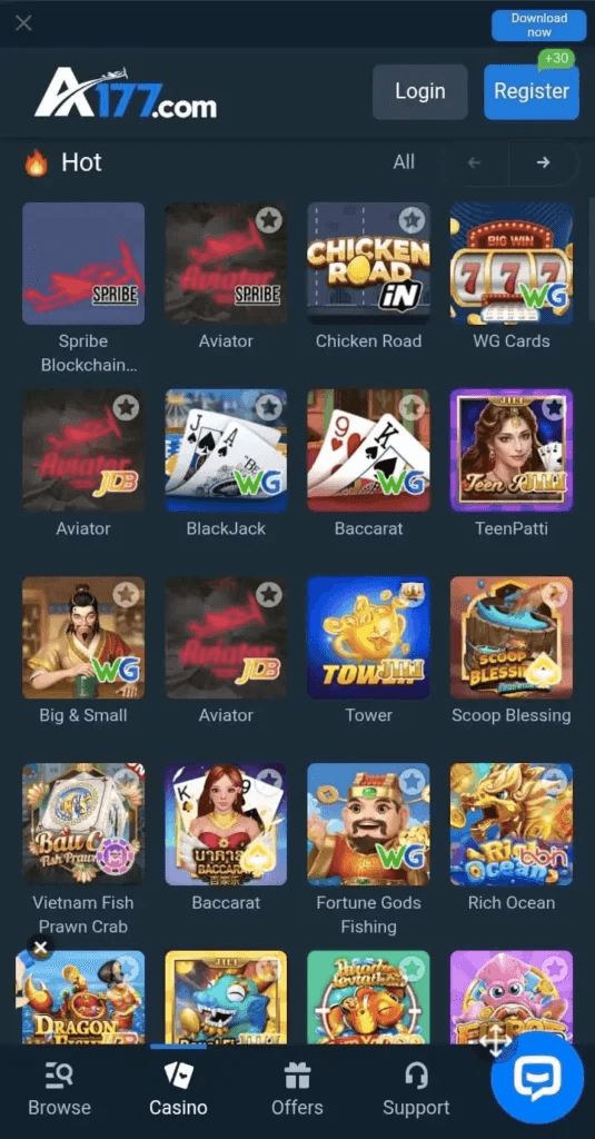 A177 Game is a mobile gaming application that offers a variety of online games ranging from card games to spin-based challenges and skill-focused mini-games. Players can explore popular formats like Teen Patti-style card matches, Dragon vs Tiger, slot-inspired spins, and other quick-play games. The app focuses on providing smooth gameplay, simple navigation, and regular updates that keep content fresh and engaging.